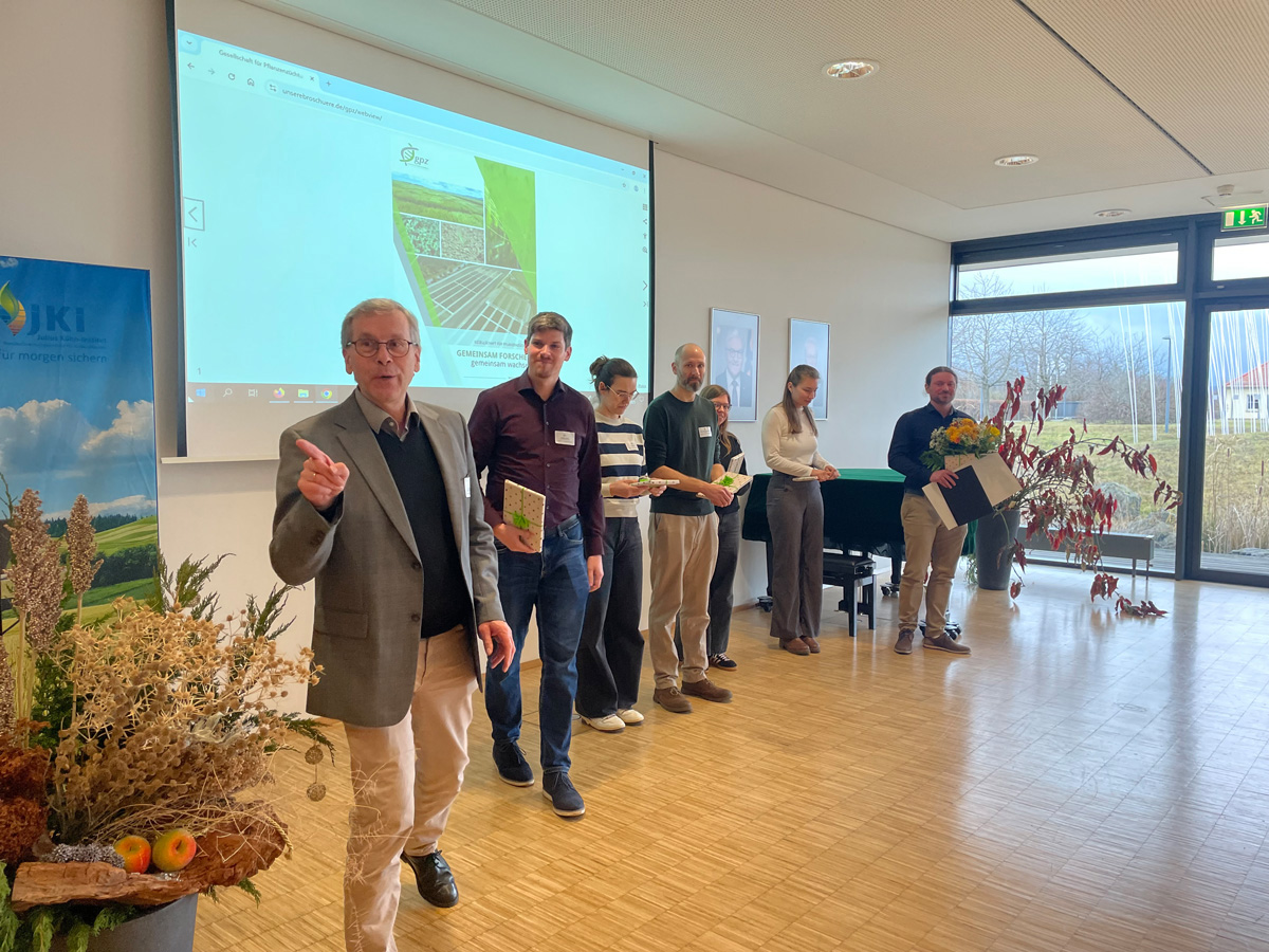Auf Beschluss der Jury hielt Nachwuchsforscher Philipp Heilmann von der Justus-Liebig-Universität Giessen die beste Präsentation seiner Ergebnisse. Mit dem Vortrag zu „Predictive Modeling with Machine Learning in Plant Breeding“ setzte sich der Forscher gegen die fünf weiteren Mitbewerbenden durch.