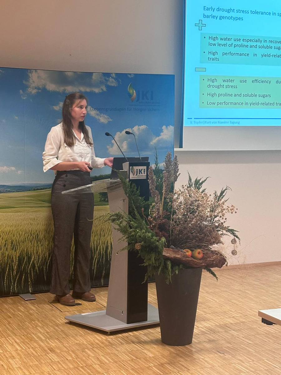 Diesem Thema folgend behandelten alle sechs Kurt von Rümker-Vorträge im Wettbewerb der Nachwuchsforschenden im weiteren Sinne das Thema Züchtung klimaresilienter Sorten, vom Screening pflanzengenetischer Ressourcen, über Methoden zur Beschleunigung der Züchtung, bis zur Aufklärung genetischer Hintergründe, die mit Stresstoleranzeigenschaften in Verbindung stehen.