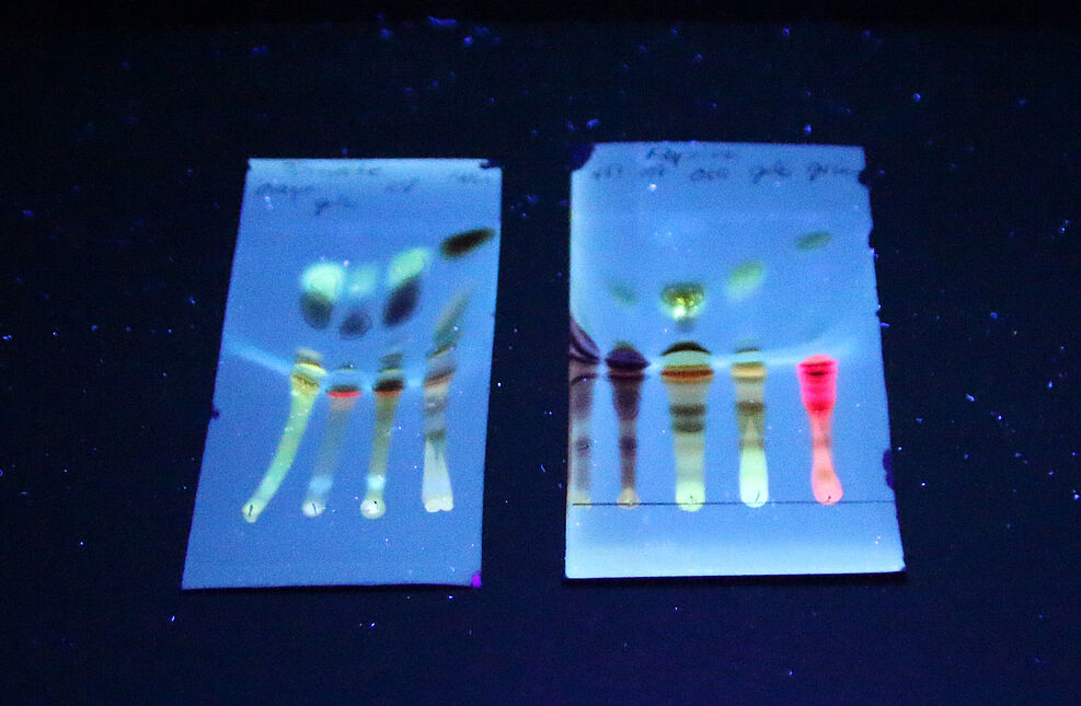 In einem Wissensspiel konnten die Schüler der 2. Klasse ihre Kenntnisse um Verteidigungsstrategien von Pflanzen bereichern oder mit einem Duftquizz zu typischen Pflanzengerüchen ihre Nasen trainieren. Sie waren aktiv mit dabei, die Farbstoffe der mitgebrachten Früchte über Dünnschichtchromatographie aufzutrennen.