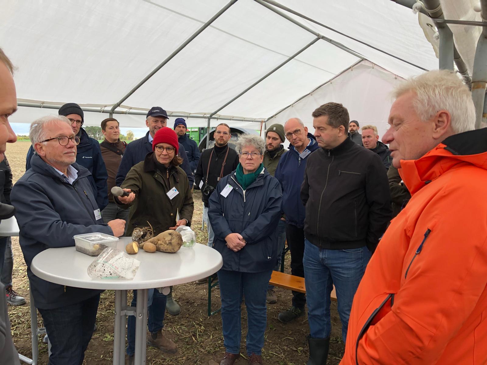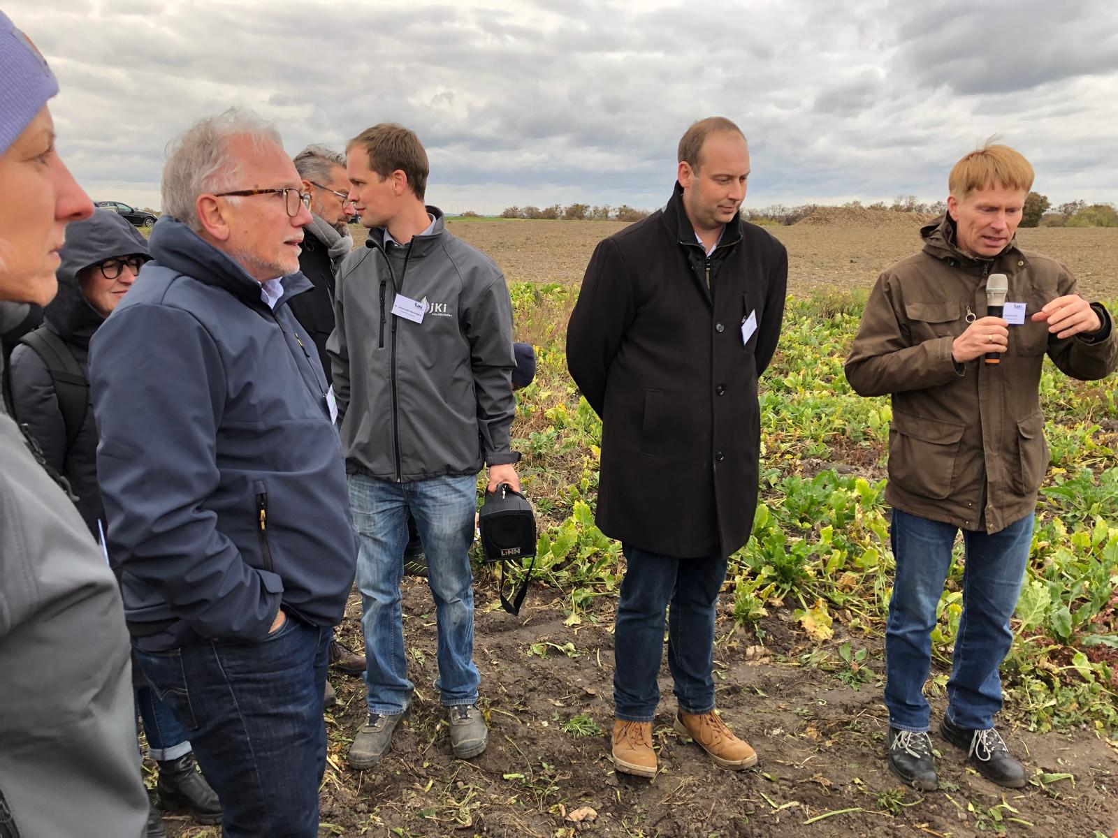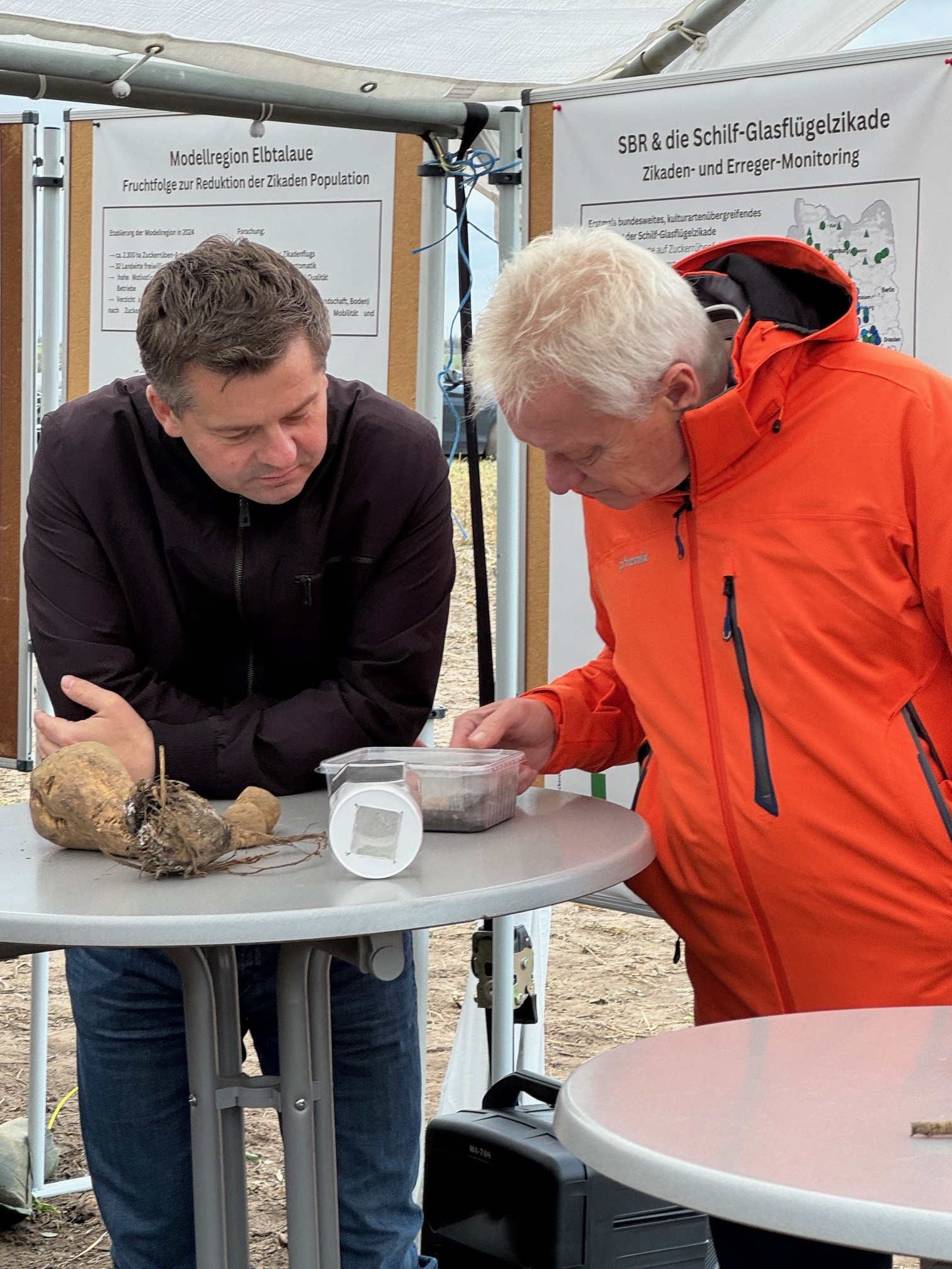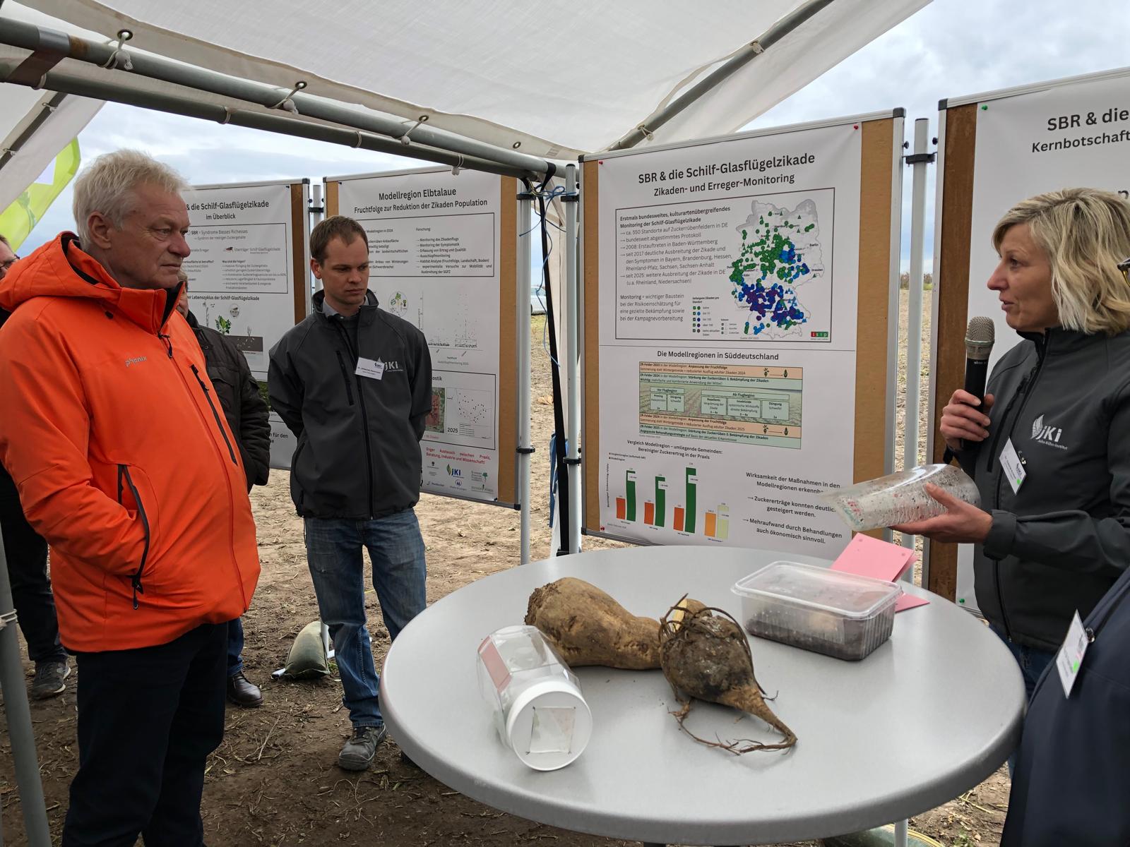 An dem Feldtermin nahmen Vertreterinnen und Vertreter aus Wirtschaft, Wissenschaft und Landwirtschaft teil, unter anderem Dr. Sabine Andert (Leiterin des JKI-Instituts für Pflanzenschutz in Ackerbau und Grünland in Braunschweig), Prof. Dr. Jürgen Gross (Leiter des JKI-Instituts für Pflanzenschutz in Obst und Weinbau in Dossenheim) sowie Forschende aus dem JKI und weiteren Einrichtungen. Auch Akteure der Zuckerrübenwirtschaft, der amtlichen Pflanzenschutzdienste und der Zuckerrübenanbauerverbände beteiligten sich am Austausch.