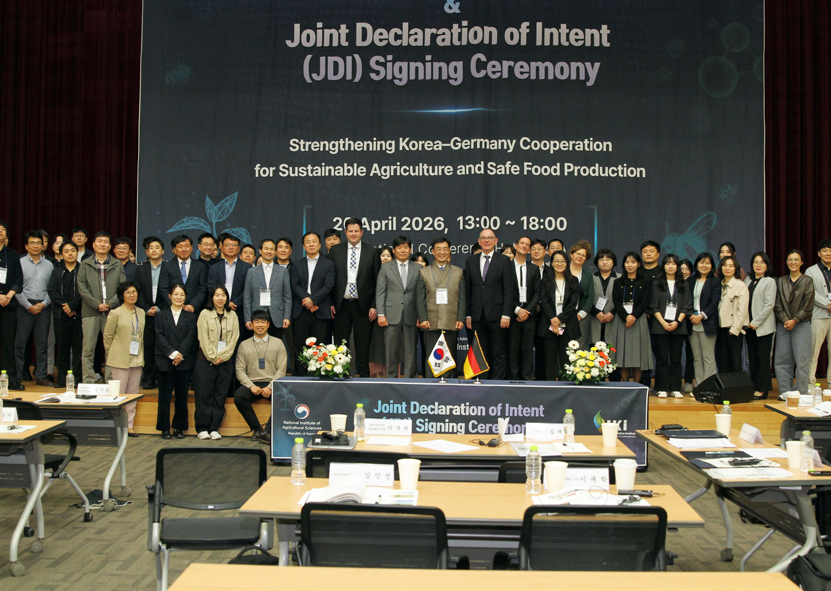 Die Landwirtschaft steht heute weltweit vor großen Herausforderungen. Der Klimawandel, der Verlust der biologischen Vielfalt sowie die Sicherung der Ernährung einer wachsenden Weltbevölkerung machen es dringend notwendig, die Anbausysteme anzupassen und Ernährungssysteme nachhaltig zu gestalten. Die Bewältigung dieser komplexen Aufgaben erfordert eine verstärkte internationale Zusammenarbeit sowie wissenschaftsbasierte, kooperative Forschungsansätze. Aus diesem Grund intensivieren Südkoreas „National Institute of Agricultural Sciences“, kurz NAS und das Julius Kühn-Institut (JKI) als Bundesforschungsinstitut für Kulturpflanzen ihre Zusammenarbeit. Nachdem im Mai 2025 eine Delegation des NAS die JKI-Standorte Dossenheim und Braunschweig besucht hatte, luden das Nationalinstitut NAS und dessen National Institute of Crop Sciences (NICS) nun zum Gegenbesuch und zu einem gemeinsamen Symposium nach Jeonju ein. Dieses International Joint Symposium bot auch den feierlichen Rahmen, um die gemeinsame Kooperationsvereinbarung (Joint Declaration of Intent) zu unterzeichnen.