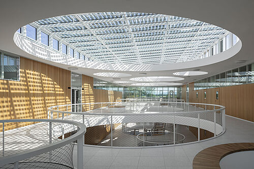 In Dossenheim wurde das neu errichtete Labor- und Bürogebäude bezogen, in welches vor acht Monaten bereits das Schwester-Institut für Pflanzenschutz in Obst- und Weinbau eingezogen war. Die Neubaumaßnahme in Dossenheim umfasst modernste Labore und Büros, eine gentechnische Anlage der Sicherheitsstufen 1 und 2, ein Insektarium zur Zucht von Nützlingen und Schädlingen, ein Quarantäne-Labor sowie den Neubau von Gewächshäusern und eine neue Maschinenhalle. Damit verbunden ist eine Re-Strukturierung der Liegenschaft. Das architektonische Highlight des neuen Labor- und Bürogebäudes ist das lichtdurchflutete Atrium, das als Begegnungs- und Interaktionsraum der Beschäftigten am Standort konzipiert ist.