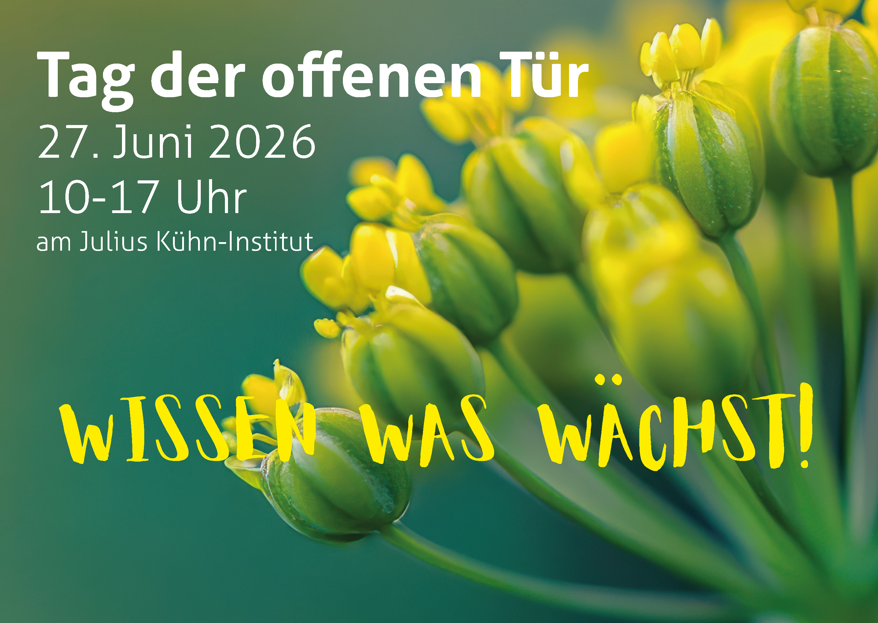 Am Samstag, 27. Juni 2026, lädt das Julius Kühn-Institut in Quedlinburg zum Tag der offenen Tür ein. Unter dem Motto „Faszination Pflanze“ öffnen wir von 10:00 bis 17:00 Uhr die Türen, zu Laboren und Gewächshäusern an unserem Hauptsitz auf dem Moorberg.