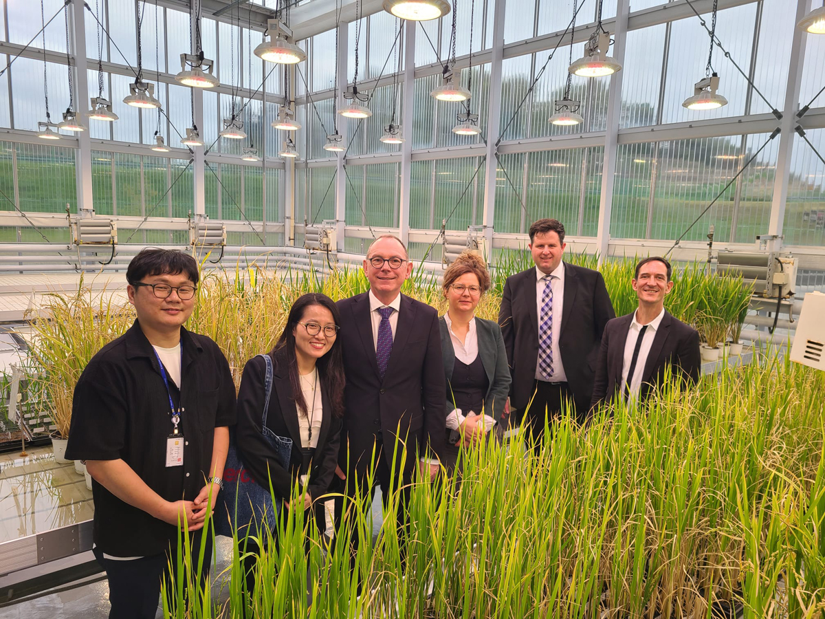 As part of a visit of a delegation of the Julius-Kühn-Institute (JKI) to South Korea from April 20th to 22nd, the members visited the National Institute for Crop and Food Science (NICS), a specialist institute operating under the umbrella of the state-run Rural Development Administration (RDA). NICS and its counterpart, the JKI-Institute for Resistance Research and Stress Tolerance (RS) have recently launched the three-year research project: “Exchange research technologies and methods of heat and drought stress tolerant wheat in response to climate warming and selection of genetic resources”. The head of JKI’s specialized institute, Prof. Dr Andreas Stahl, took advantage of his visit to South Korea to hold an initial face-to-face project meeting with his fellow researchers to discuss further details.