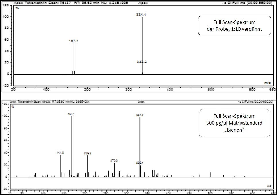 The GC-MS measuring system is used to identify and quantify the residues of pesticides and other relevant xenobiotics in various matrices [e.g. bees, plants, pollen, nectar, wax].