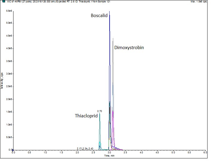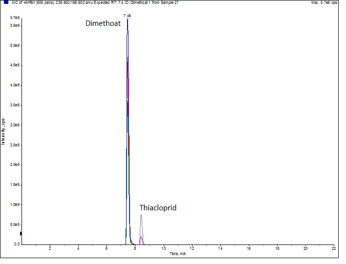 The LC-MS/MS measuring system is used to identify and quantify the residues of pesticides and other relevant xenobiotics in various matrices [e.g. bees, plants, pollen, nectar, wax].