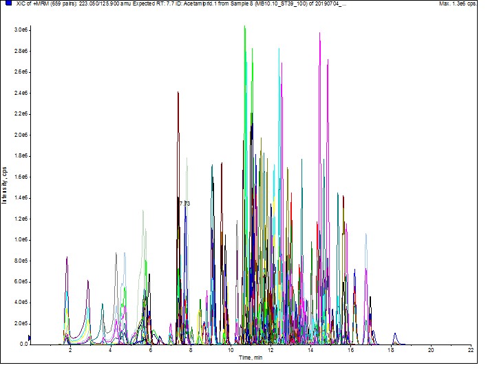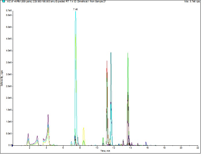 The Analyst® software is used for device control, development of measurement methods, data acquisition and processing. The MultiQuantTM software is used to identify and quantify the analytes in the samples.