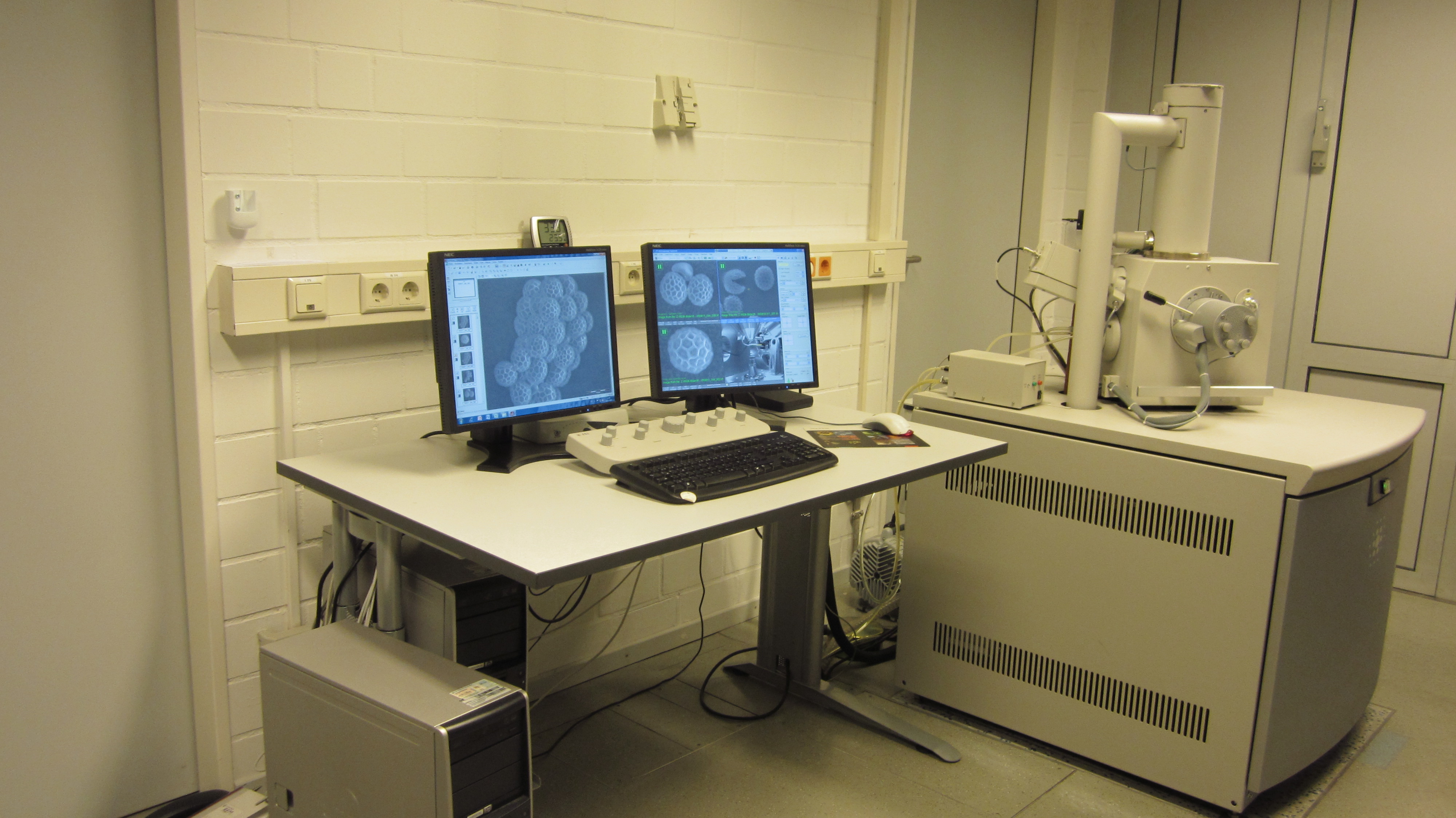 Description: Scanning electron microscope, 30 kV, tungsten cathode. Version: Quanta 250 (serial no. D9226), There are three modes available: 1) Analysis of dry and fixed samples in high vacuum; 2) Direct analysis of biological samples in low vacuum, 3) Environmental Scanning Electron Microscope (ESEM) mode for non-vacuum stable or outgassing samples (e.g. examination of biological samples without prior fixation).